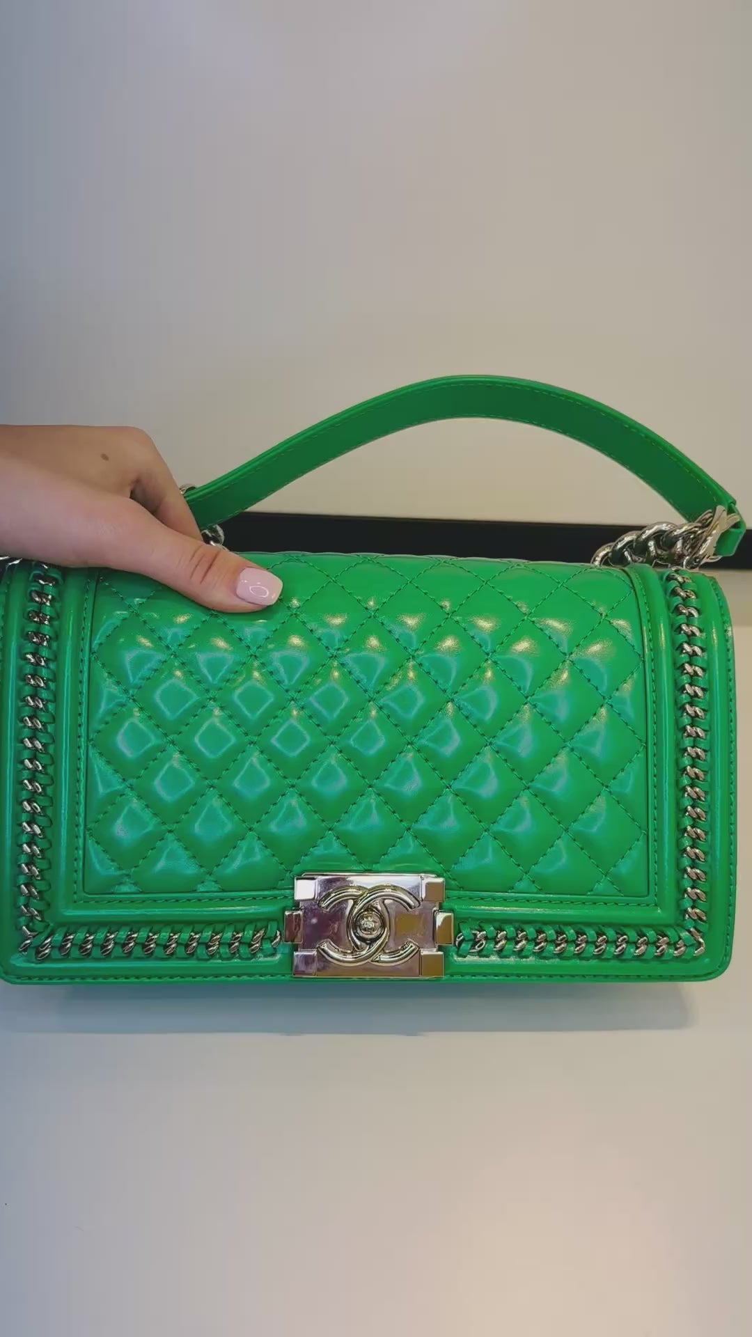 Com seu design marcante e contemporâneo, a Chanel Boy Verde une a ousadia da cor ao luxo icônico da maison. Uma peça sofisticada e cheia de personalidade, perfeita para transformar qualquer look. Disponível para locação.