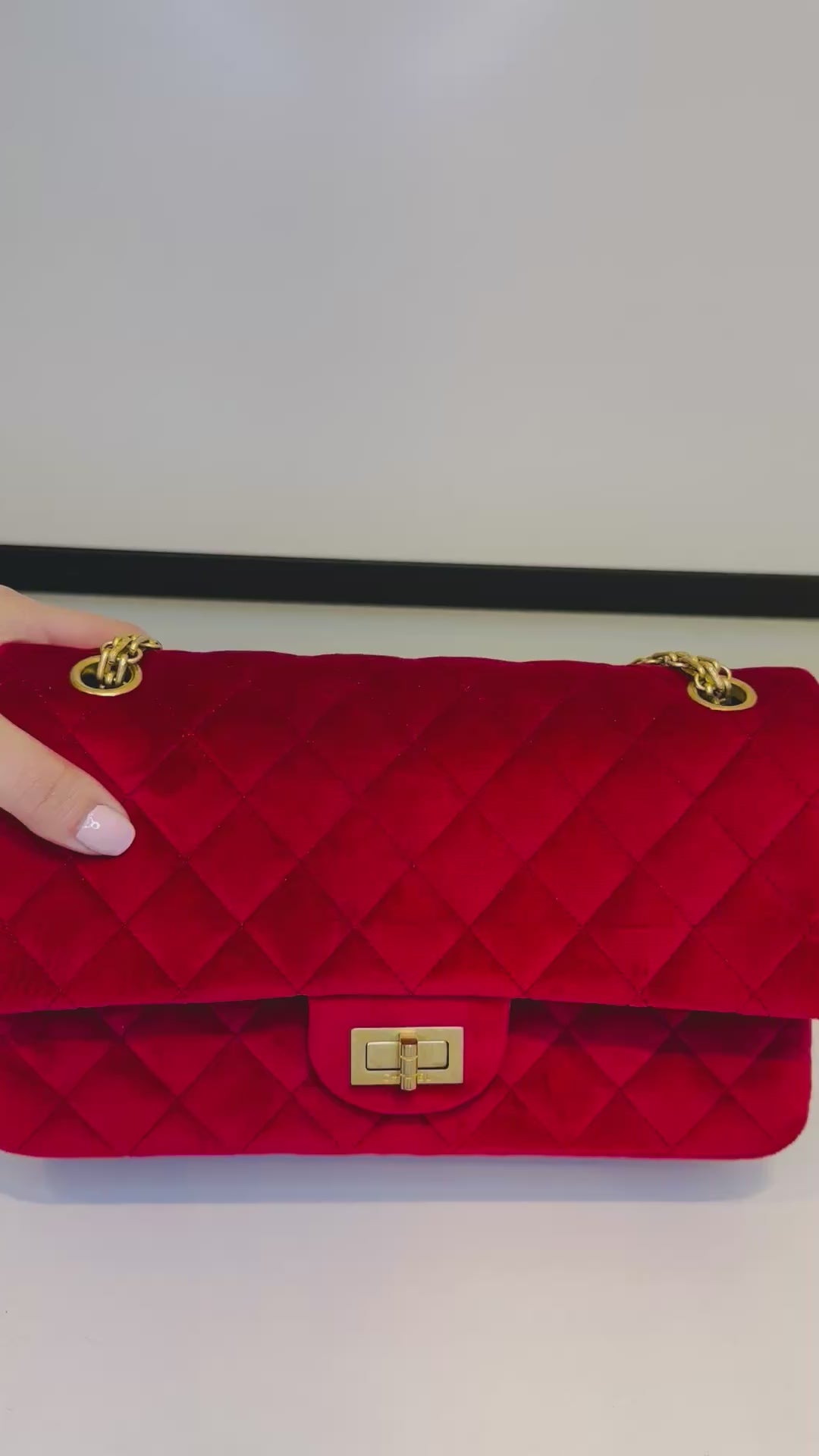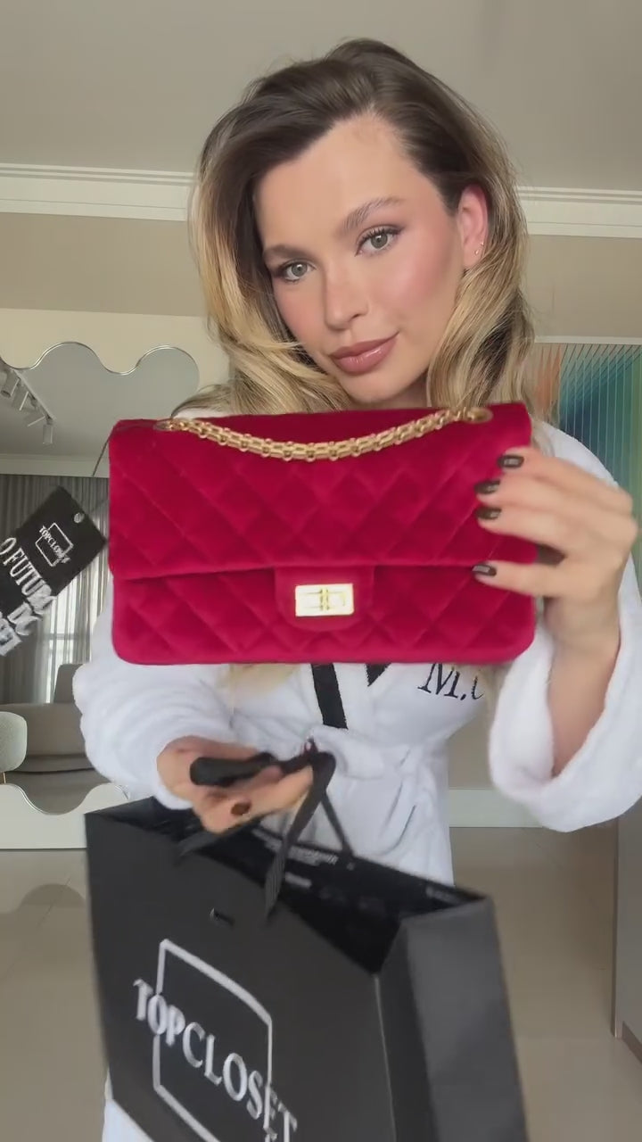 Luxuosa e sofisticada, a Chanel Clássica de Veludo Vermelha é a escolha perfeita para quem deseja marcar presença com elegância. O veludo confere um toque refinado e imponente, enquanto o vermelho traz intensidade e charme atemporal.