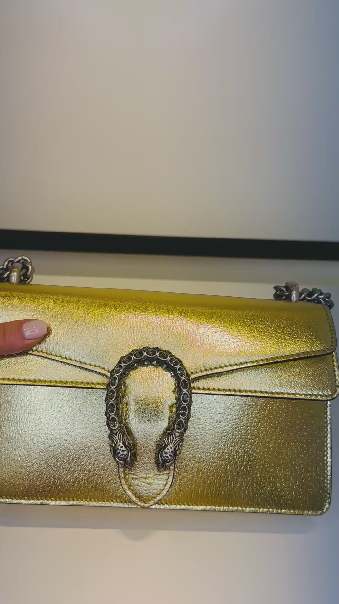 Um clássico moderno da Gucci, a Dionysus Gold combina linhas elegantes com o fecho icônico em formato de cabeça de tigre. Seu acabamento em dourado adiciona um toque de sofisticação e exclusividade, tornando-a uma peça única no closet de luxo.