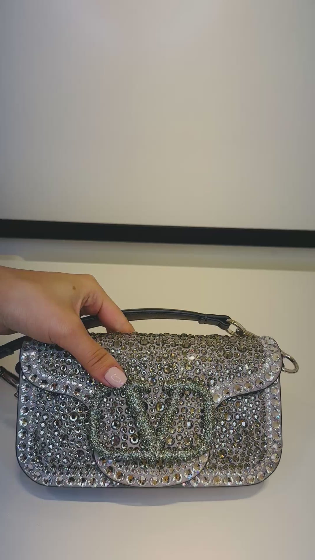 Moderna e deslumbrante, a Valentino Loco é inteiramente cravejada de cristais, trazendo brilho e sofisticação em cada detalhe. Com design contemporâneo e acabamento impecável, é a bolsa perfeita para quem deseja transformar qualquer produção em um look de impacto.