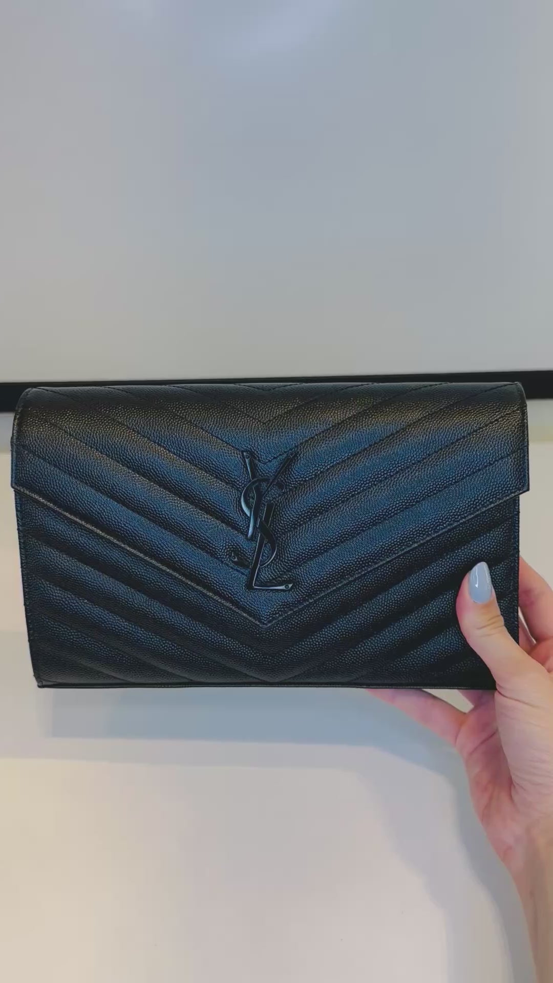Clássica e atemporal, a YSL Envelope Preta é um verdadeiro ícone de sofisticação. Seu design em matelassê com o logo YSL em destaque traduz a elegância da maison francesa em cada detalhe. Acompanha alça removível que permite usá-la de diferentes formas — no ombro, a tiracolo ou como clutch, tornando-a extremamente versátil.