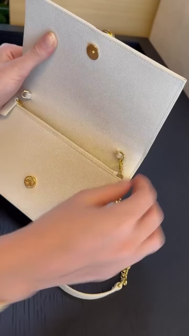 Elegância em sua forma mais pura, a YSL Kate é um clássico atemporal da maison francesa. Compacta e sofisticada, traz o logo YSL em destaque, a icônica corrente dourada e a versatilidade da alça removível, que permite usá-la como clutch.