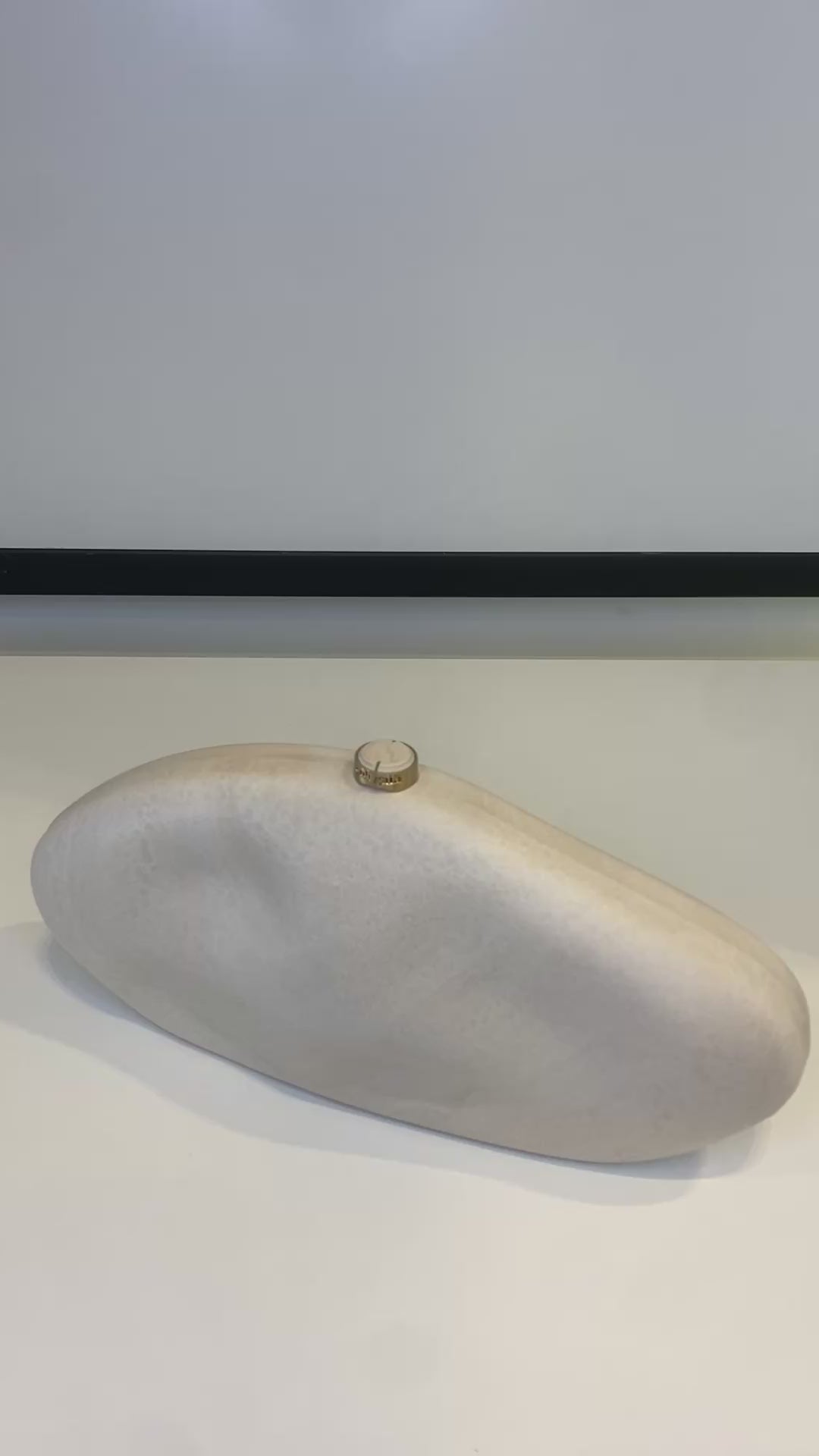 A Clutch Cult Gaia Caldera é uma verdadeira obra de design contemporâneo. Com sua forma escultural e acabamento em acrílico texturizado, seu design reflete o equilíbrio perfeito entre arte e funcionalidade, com curvas orgânicas que remetem às formações naturais de pedra travertino.
